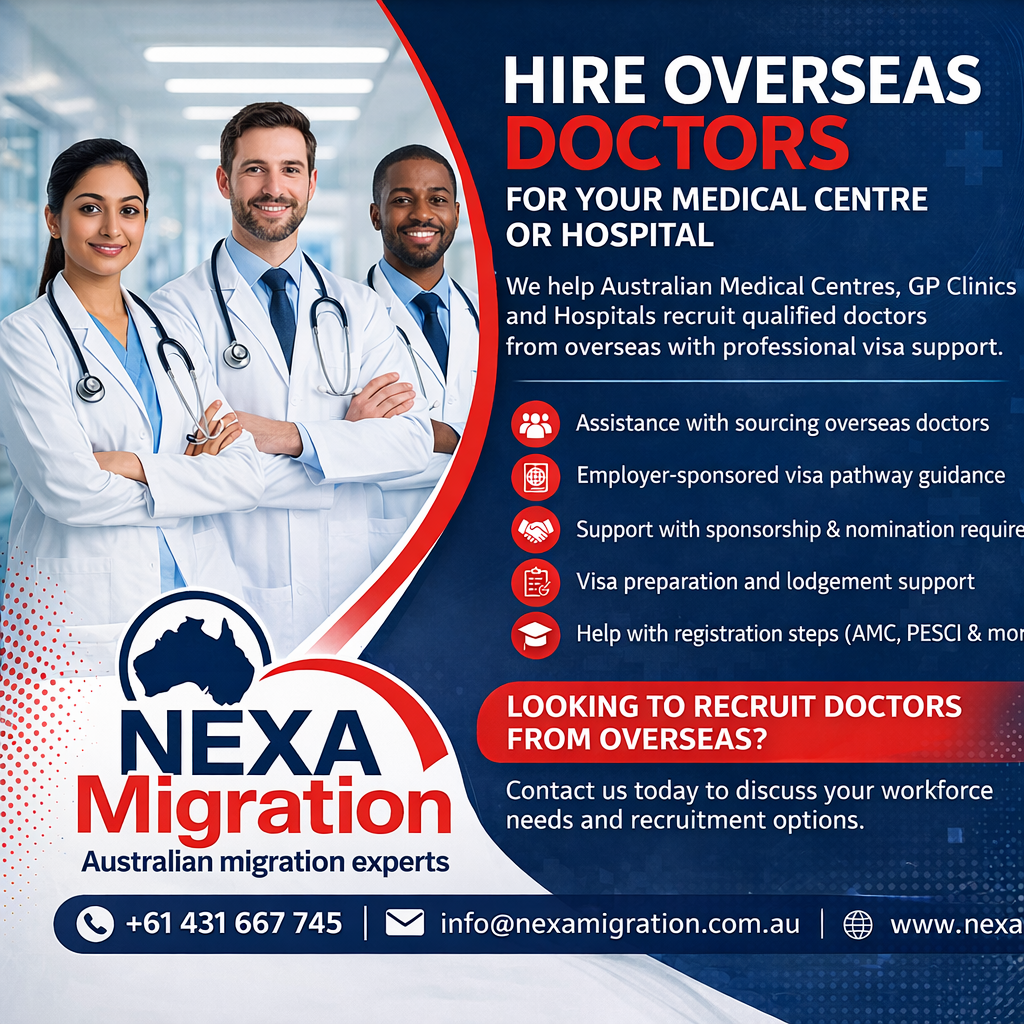 At NexaMigration, we help medical centres, GP clinics, and hospitals connect with skilled overseas doctors. More importantly, we guide you through the entire process — from recruitment to visa support — so you can hire with confidence.